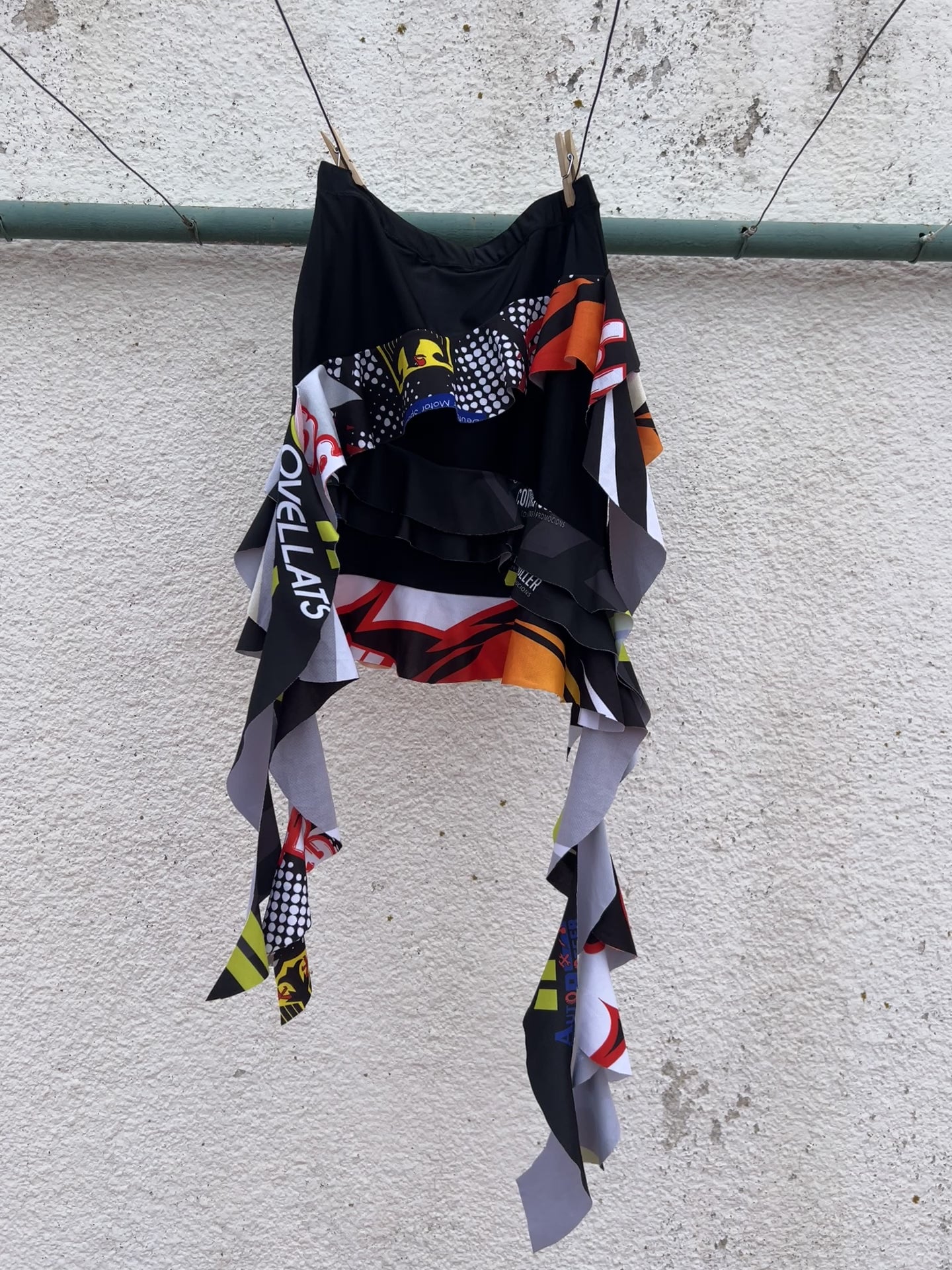 Falda Vuelos única, hecha a partir de camisetas biker.